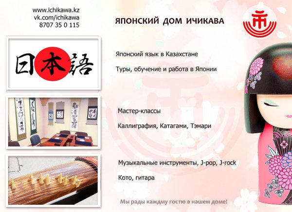 Анна Тян (22.02.2017): Хорошего дня, Минасан! Ждем Вас на курсах японского языка! . Все уровни! Центр города! Оплата после 1 урока! . @ichikawa.kz