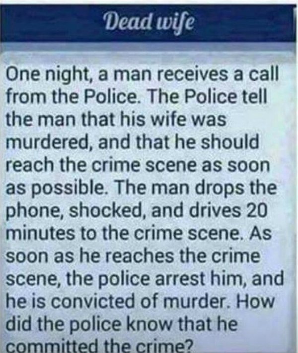 Муж-убийца! Загадка на логику и внимательность из детства наших родителей! Кто понял текст — ставь лайк! Кто знает ответ — пишите в комментариях! Отгадка будет опубликована в среду! Всем доброго понедельника…