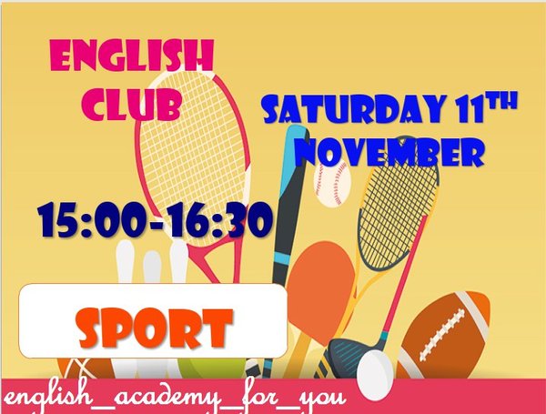 English academy приглашает всех желающих посетить English club English club проводится каждую субботу :в 15.00—16.30. Тема этой субботы(11 ноября) — Sport Kinds of sports: Boxing — бокс Badminton — бадминтон Rugby — рэгби Ice Hockey — хоккей Surfing — сёрфинг И еще об остальных видах спорта подискутировать Вам удастся в нашем English club-e Бесплатно для слушателей нашего центра Для тех, кто не является нашими студентами: 1 посещение — 1000тг. Месячный абонемент- 2500тг. Наш адрес: г.Алматы, проспект Абая 75, уг.ул.Масанчи… — Читать дальше