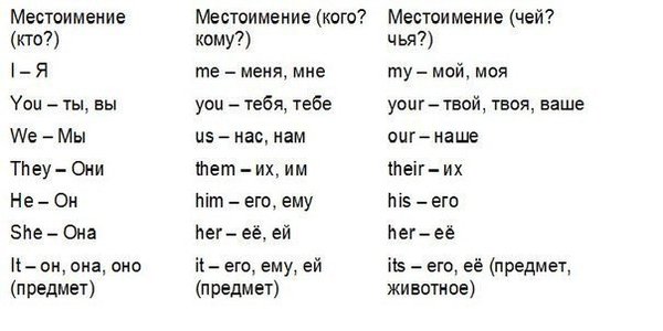 likes to bark. – Этой собаке нравится лаять. Местоимение «it» имеет 3 важные функции: — используется для замены названий всех предметов, животных и любых других одушевленных или неодушевленных явлений. Короче говоря всего, кроме людей! — означает либо переводится как «это»: It is very interesting – Это очень интересно. It’s Mike. Open the door! – Это Майк. Открой дверь! It’s her new style. – Это её новый стиль. Who is it? – Кто это? — вообще никак не переводиться, а используется просто для того чтобы сказать о погоде, времени, состоянии и т.п. Example: It is frost – мороз (на улице). It is bright day – замечательный день. It will be windy – Будет ветряно. It’s 5 o’clock – пять часов It’s was cool – Было круто. It will be very funny – Будет очень весело. Абсолютные местоимения: mine – мой, моя yours – твой, ваше ours – наше theirs – их his – его hers – её its – его, её Did you see my keys? – No, I didn’t. But mine is here. (mine вместо my keys) Ты видел мои ключи? – Нет, но мои здесь. Yours tables are smaller than theirs. (theirs вместо their tables) Ваши столы меньше чем у них.