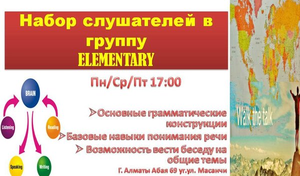 Продолжается набор в группу Elementary Понедельник,среда,пятница с 18:30 до 20:00 Стоимость обучения 12000 тенге за 12 занятий Поспешите записаться @ Almaty, Kazahstan