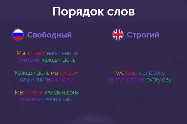 Основные отличия английского языка от русского языка в схематичных картинках.