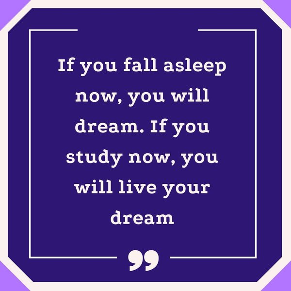 If you fall asleep now, you will dream. If you study now, you will live your dream — Если ты сейчас уснешь, тебе приснится сон. Но если ты будешь сейчас учиться, твои сны/мечты станут явью. Ставьте лайк ️