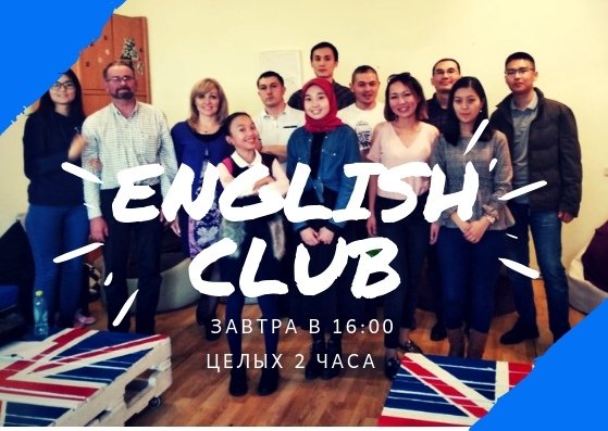 English Club в субботу в 16:00 Готовы к длинным выходным? Не забываем про English Club. Завтра, вас ждет целых 2 часа непрерывного английского Каждую субботу в 16:00 два преподавателя для вас устраивают С Айгуль вы обсудите тему «Dialogue & Revenge». И наша любимая Сая подготовила тему «Comfort zone». Как всегда ‼Завтра будет ЖАРКО‼ Давайте отблагодарим наших преподавателей и сделает много фоток