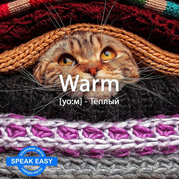 Warm – Теплый Your house is very warm and cosy. — Ваш дом очень тёплый и уютный................................................................... Другие значения слова: горячий, жаркий, нагреваться. .................................................................. Напиши выражение 2 раза, чтобы лучше запомнить