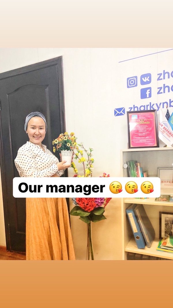 Танысып қойыңыздар, біздің менеджер — Куляш. Өте тиянақты, жауапкершілігі мол. ️Ал сіз әріптесіңіздің қандай қасиетін ерекше бағалайсыз? ————————————————————-Знакомьтесь, наш менеджер по работе с клиентами — Куляш. ️ Внимательная к требованиям клиента, ️ответственная, надежная. А какое качество Вы больше всего цените в коллегах? ———————————————————— ️График работы Нашего центра с 8:30 утра до 21:00 вечера. Тест на определение уровня можно сдать бесплатно и без записи. ️