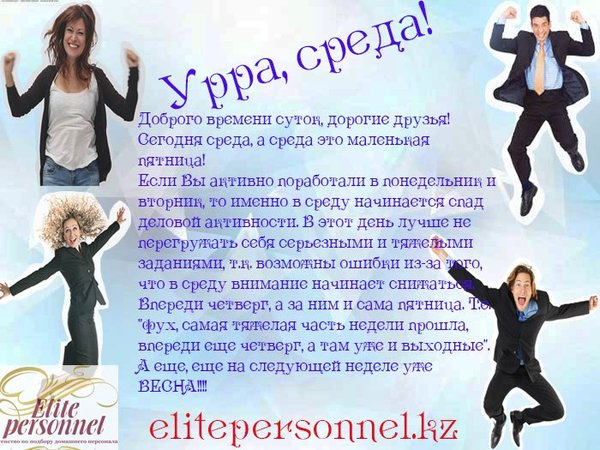 Урра, среда! @elite_personnel_home желает Вам хорошего вечера и быстрейшего окончания рабочего дня!