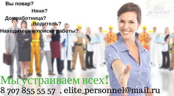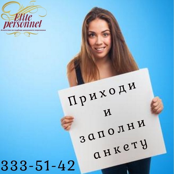 Дорогие друзья подписчики и гости страницы, агентство «Elite personnel» поздравляет Вас с окончанием трудовой недели и желает Вам хорошо провести выходные! На нашей странице Вы можете задать любой интересующий Вас вопрос по поводу: — найма повара, няни и тд. — о работе нашего Агентства — о компании — об устройстве на работу — или другой любой вопрос Мы постараемся дать Вам развернутый ответ на каждый вопрос, ждем Ваших комментариев и вопросов. Хорошего дня! Тел.:;; 333-51-42.
