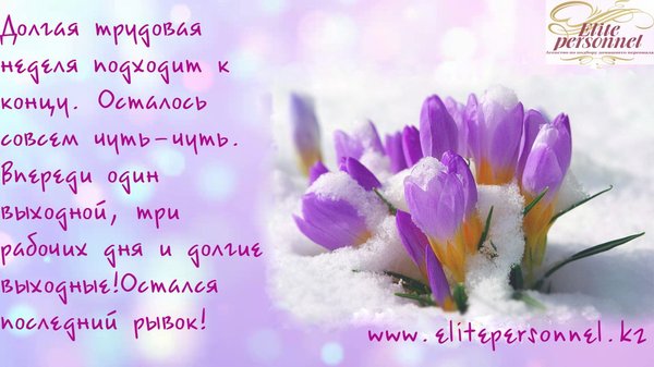 Уважаемые друзья, клиенты, подписчики! Осталось совсем чуть чуть! Эта долгая трудовая неделя подходит к концу. Завтра немного отдохнём, поработаем 3 дня и уйдем на долгие выходные!