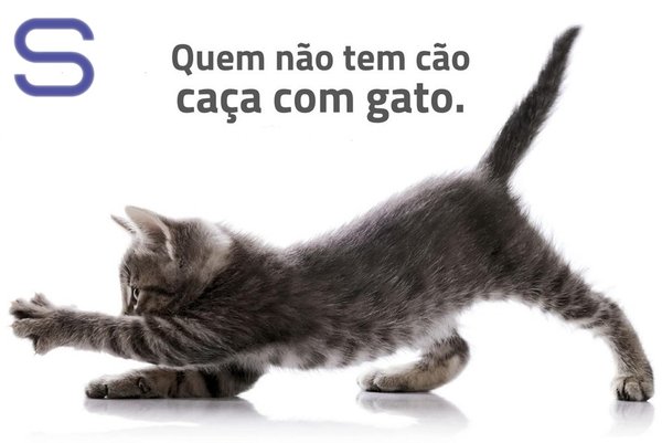 Португальцы говорят: Quem não tem cão caça com gato. Дословный перевод: У кого нет собаки, охотится с кошкой. Значение: «Пользоваться тем, что имеешь. Вы должны делать то, что должны сделать, при помощи того, чем владеете».