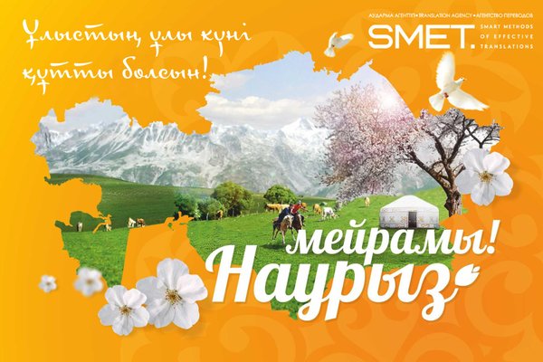 Ұлыстың Ұлы күні күнімен құттықтаймыз! Әз-Наурыз әр қайсыңыздың шаңырағыңызға құт-береке мен қуаныш әкелсін! Поздравляем Вас с прекрасным весенним праздником — Наурыз! Пусть каждый день весны, каждый солнечный луч приносят в Ваш дом счастье и благополучие.