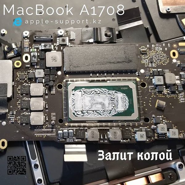 Alex Белых (08.10.2018): Сегодня приехал к нам MacBook Pro A1708, залитый #Coka_Coloi, да да тот самый новый Макбук 2017, которыми примерно чуть больше чем под года. Плату восстановить удалось, а вот матрицу под замену. На фото видно полоса, матрицу к сожалению на замену. Ремонт Apple iPhone, iPad, iMaс, MacBook, Apple Watch Выезд мастера \ Режим работы: с 10:00 до 19:00 (но предварительно позвоните) ️ apple-support.kz и i-apple.kz