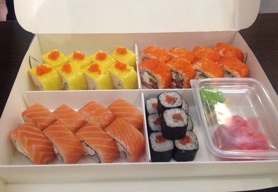 вкусный обед со скидкой и доставкой Сегодня «Солнечный» набор за 3500 Филадельфия 8шт+Калифорния 8шт+Сливочный лосось 8шт ролл с лососем в подарок бесплатная доставка в нашем квадрате