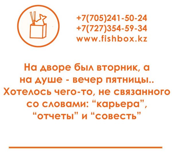 Доброго дня, друзья! Дла тех кто работает и учится — продуктивного дня и отличного настроения! Для тех, кто отдыхает — позитива и близких рядом! #доставкасушиалматы #сушиалматы #fishbox