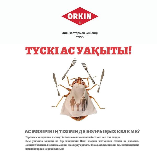 Мереке құтты болсын! Поздравляем ORKIN – бұл ғылымға негізделген зиянкестерге қарсы кешенді күрес. 120 жылдан аса уақытты қамтыған тәжірибе. Ең сенімді кепілдік! Call-орталығы 24/7: Нұр-Сұлтан:, Алматы: Ақтөбе: Ақтау: Атырау: Шымкент: Өскемен:, Павлодар: Петропавл:, Көкшетау: Қостанай: Семей: Немесе бізге хат жазыңыз info@orkin.kz