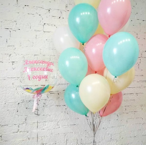 Фонтан из 8 шаров без рисунка, 2 шаров с конфетти и 1 фольгированного шара =910 рублей Шар-пузырь (bubbles) 56 см с индивидуальной надписью и перьями = 1590 рублей Стоимость всей композиции = 3410 рублей Цветовая гамма зависит только от вашей фантазии. Для заказа WhatsApp в шапке профиля, direct, SMS, ️