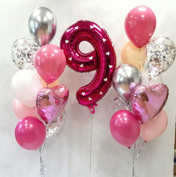 Фонтан из 7 шаров без рисунка, 2 шаров с конфетти и 1 фольгированного шара =850 рублей Цифра фольгированная =650 рублей Стоимость всей композиции = 2350 рублей Цветовая гамма на любой вкус. Для заказа WhatsApp в шапке профиля, direct, SMS, ️