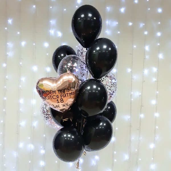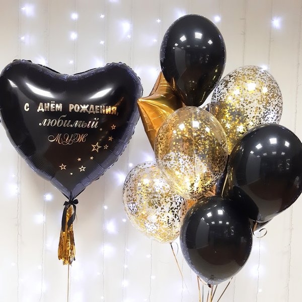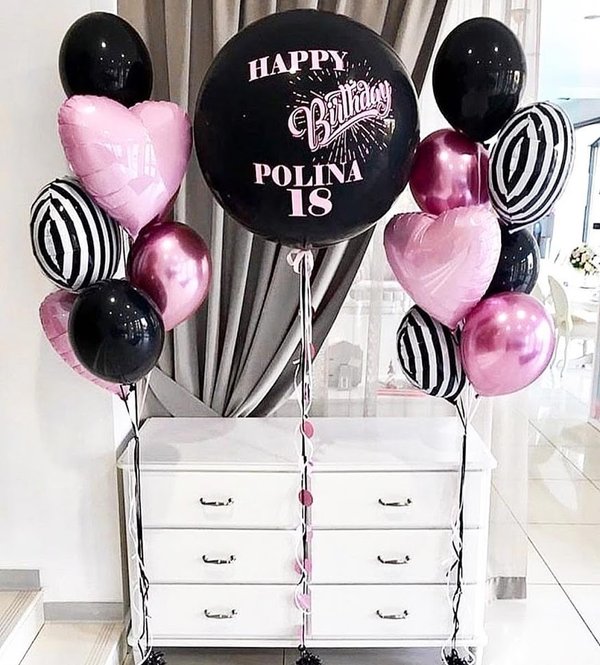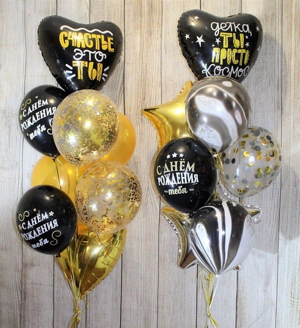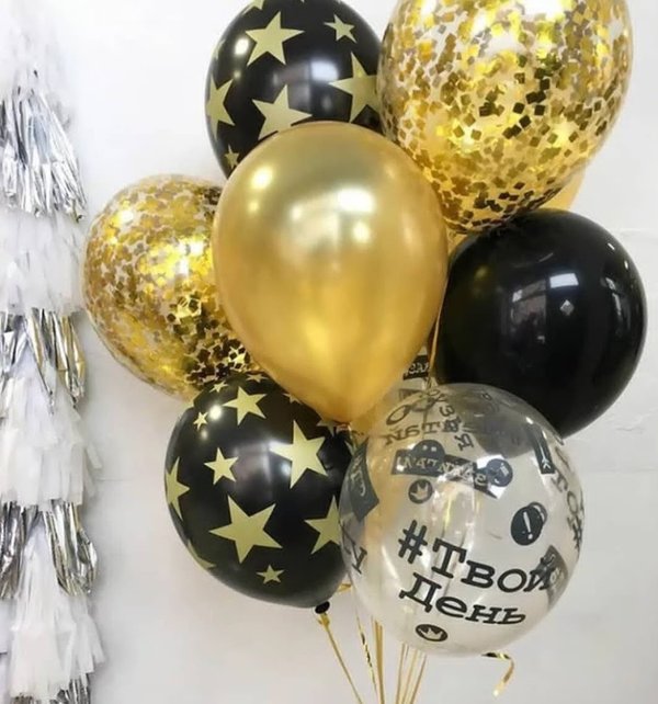 Сочетание черного и золота не оставит равнодушным никого, а прозрачные шары с конфетти добавят легкости в композицию. Фольгированный шар с индивидуальной надписью 1200 рублей Фонтан 1030 рублей Фонтан состоит из 5 шаров без рисунка 3 шаров с конфетти 2 фольгированных шаров Цветовая гамма зависит только от вашей фантазии. Для заказа WhatsApp в шапке профиля, direct, SMS, ️