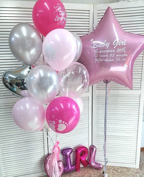 Вот так нежно и трогательно можно встретить малышку из роддома. Этот важный и волнующий день запомнится навсегда. Звезда с индивидуальной надписью 1200 рублей Слово GIRL 250 рублей Букет шаров 1080 рублей Широкая цветовая палитра шаров позволит оформить праздник на любую тему. Для заказа WhatsApp в шапке профиля, direct, SMS, ️