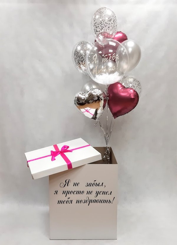 Коробка с бантом и индивидуальной надписью + необычайно нежное признание на прозрачном шаре с пухом + облако из шаров Ну, скажите, кто устоит после такого извинения?! Хит продаж- коробка с шарами. 2630 рублей Как всегда, расцветки — на самый изысканный вкус Для заказа WhatsApp в шапке профиля, direct, SMS, ️