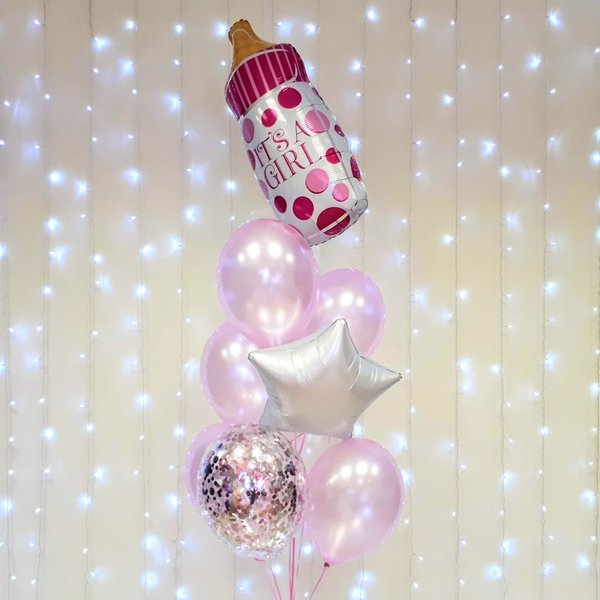 Букет Розовая бутылочка 1620 рублей. В букет входит: 7 шаров латексных с обработкой, 1 фольгированная звезда, 1 шар с конфетти, фольгированный шар «Бутылочка» Цветовая гамма на самый изысканный вкус. Большой выбор шаров с рисунками. Оформление всех праздников, любой сложности. Для заказа WhatsApp в шапке профиля, direct, SMS, ️