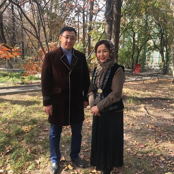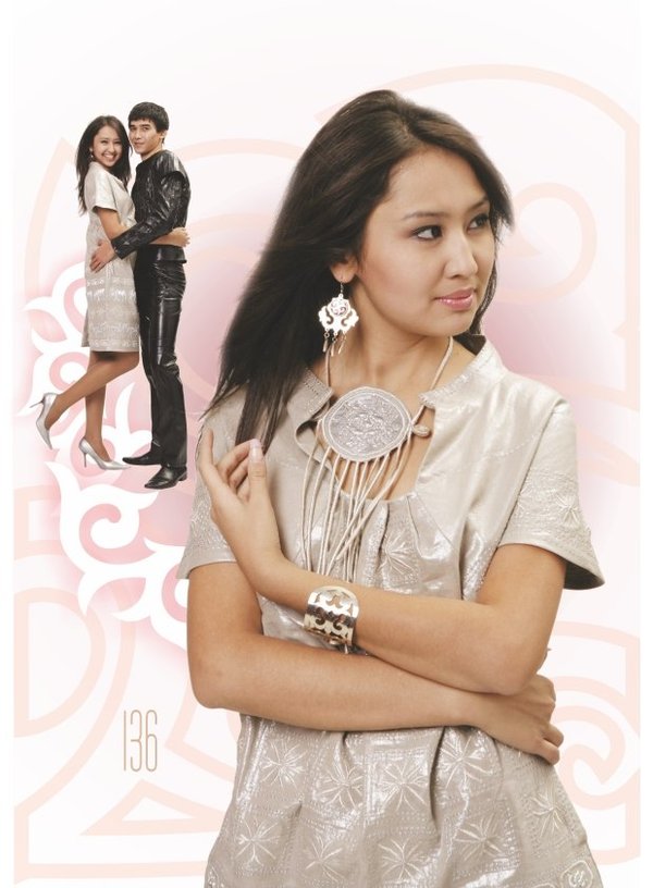 Казахстанская поп-певица, телеведущая — Мадина Садвакасова и режиссер телеканала «Хабар» — Олжас Смагулов с коллекций компани «Ерке-Нур».