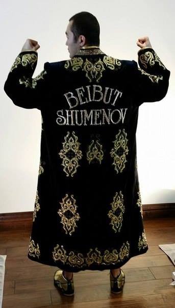 Ерке - Нұр!!! (04.01.2015): Бейбіт Шүмен — кәсіпқой боксшы, WBA және ІВА бойынша дүниежүзі чемпионы. «Ерке-Нұр» компаниясының тіккен арнайы киімімен.