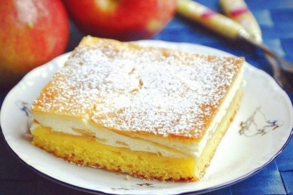 Разогрейте духовку до 180 градусов. В форму размером 20х20 см. выложите 2/3 теста, сверху разложите слой нарезанных яблок, на яблоки выложите творожную начинку. На нее распределите тонким слоем оставшееся тесто, не страшно, если тесто немного смешается с творогом, после выпечки этого не будет заметно.