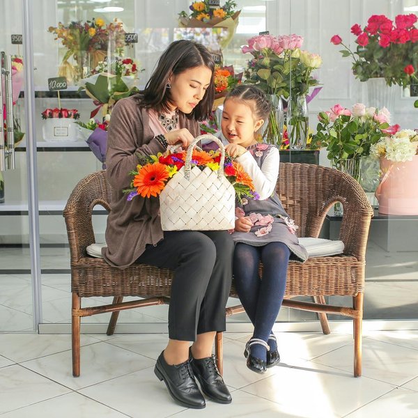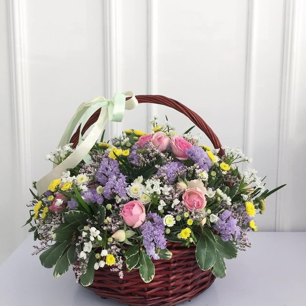 А вы на выходных пойдете в гости к родителям, ажеке? Композиция в классическом стиле: плетенная корзина, как олицетворение уюта и тепла, мелкая ромашка в сочетании со спрей розами нежно-розовых тонов, знак внимания от самого сердца ️ С любовью, Gulder.kz