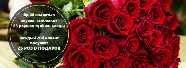 Не упустите свой шанс стать счастливым обладателем букета из 25 удивительных роз! В период с 18 по 28 февраля каждый 20-й покупатель, сделавший заказ в нашем интернет-магазине, получит в подарок букет! Благодарим Вас за доверие!
