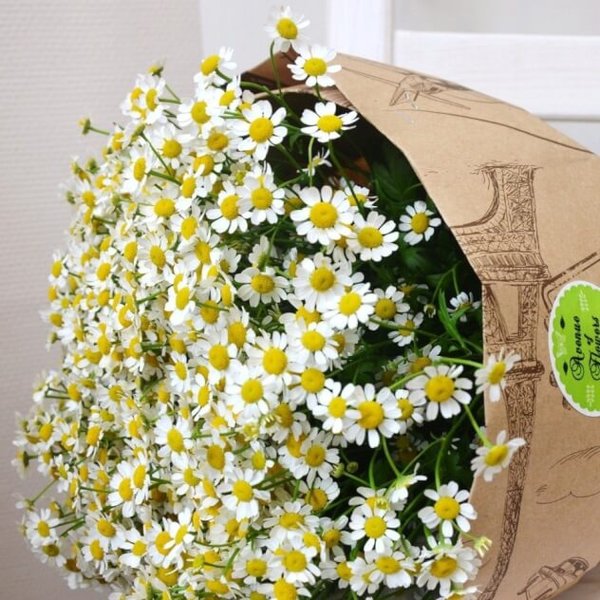 Букет из ромашек. Издавна ромашки считаются символом любви, ведь именно на них девушки гадали, чтобы узнать любит суженный или нет. Сегодня эти романтичные цветы, как символ верности и семейного счастья принято дарить родителям и близким людям, иногда учителям, а вот в качестве подарка деловым партнерам ромашка не годится. С уважением, Gulder.kz