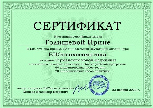 Получаю новую специальность — психосоматолог. Работаю в этом направлении. Учусь дальше.