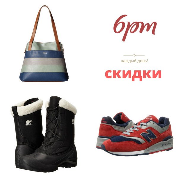 Наш любимый 6pm.com ведет обратный отсчет до Рождества! Каждый день этот мультибрендовый магазин объявляет мегаскидки типа таких: – сумка Nine West за $30 вместо $90 () – мужской пуховик U.S. POLO ASSN. за $35 вместо $120 () – кроссовки New Balance за $80 вместо $150 (). Cмело заходите в специальный раздел — и выбирайте! Магазин с удовольствием принимает наши карты и отправляет покупки на Наш склад!