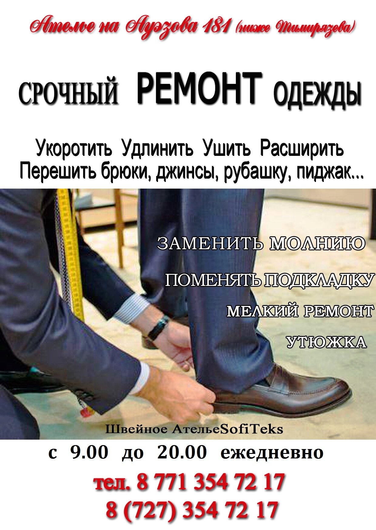 пошив курток на заказ — мы нашли для вас 4 организации в городе Алматы;