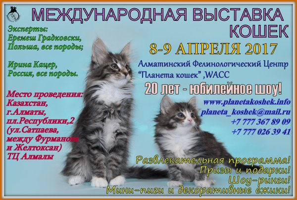 Фелинологический Центр «Планета кошек» в Алматы (20.03.2017): 8—9.04.17 выставка кошек
