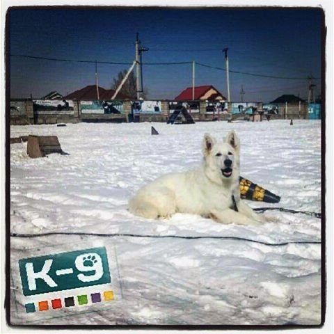Alexander Bodnar (21.02.2017): Эта «снежная королева» — белая швейцарская овчарка по кличке Джина, которая проходит обучение по послушанию собак в #школадрессировкик9 и паралелльно посещает уроки хэндлинга (подготовка собаки к выставке).
