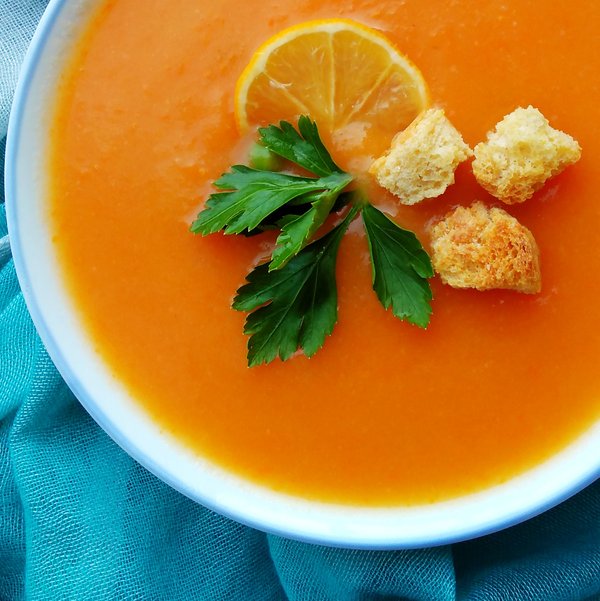 ольствие)) 1. Морковь и сельдерей тушим в масле до мягкости, добавляем имбирь. Мешаем и тушим ещё 2 мин. 2. Заливаем водой, даём закипеть. Взбиваем блендером, добавляем ароматную цедру и сок лимона, соль, масло. Доводим до желаемой консистенции и готово Готовьте с удовольствием и становитесь вегетарианцами как мы Подписывайтесь на хештег #кухня_chintamani, чтоб не пропустить новинки