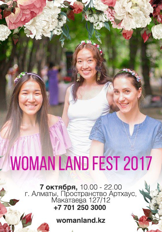 овые знакомства и море вдохновения! WomanLand — это ИДЕАЛЬНЫЙ ЖЕНСКИЙ ДЕНЬ! Продажи билетов WOMAN LAND FEST 2017 уже идут полным ходом!!! И, отличная новость — до 26 сентября стоимость входного билета на фестиваль «WOMAN LAND FEST 2017» составляет 2 500 тг (ограниченная партия) 7 октября, Пространство «Артхаус» на Макатаева, 127\12. Приобрести билеты можно у нас в центре!! Сделайте себе такой подарок — приходите на фестиваль «WOMAN LAND FEST 2017»