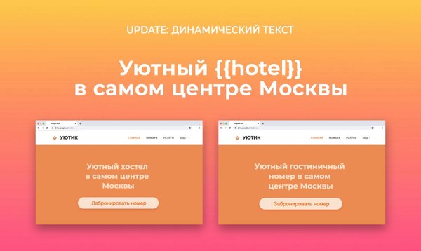 Всем привет! Ранее мы уже писали в нашем блоге про появление функции для добавления динамического текста на сайт uKit. Мы приготовили инструкцию, в которой рассказываем подробнее, как настроить динамический текст, чтобы страницы вашего сайта были максимально релевантны для посетителей — то есть каждый человек видел ту информацию, которая больше подходит именно для него.