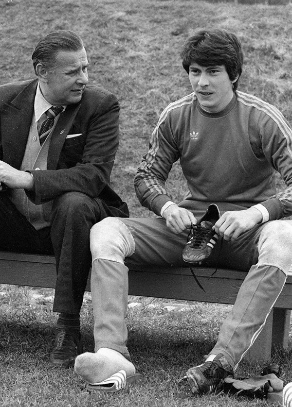 История мужского стиля по четвергам. 1982 год. Лев Яшин беседует с Ринатом Дасаевым перед тренировкой сборной СССР.
