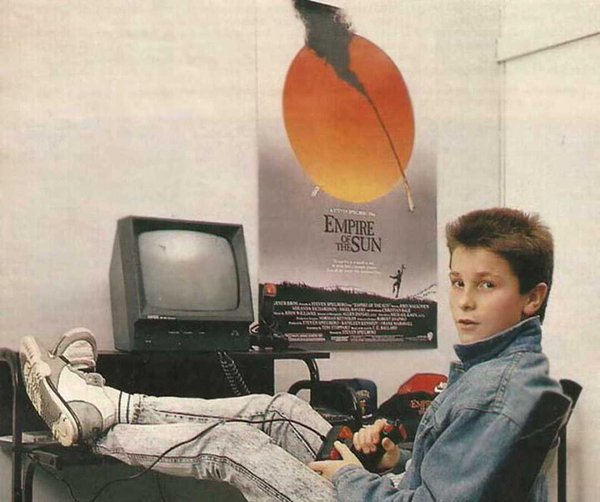 История мужского стиля по четвергам. 1988 год. Молодой, очень молодой Кристиан Бэйл проводит время за видеоиграми.