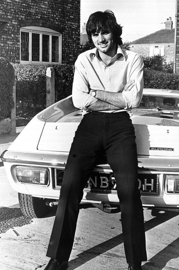 1969 год. Футболист «Манчестер Юнайтед» Джордж Бест около своего дома в Манчестере хвастается новой машиной.