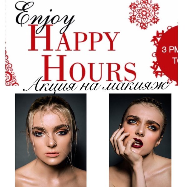 !!!HAPPY HOURS!!! Милые наши девушки, дамы!!! В студии красоты Sandi Beksirga начались акции Не упустите счастливые часы: Каждый день: С 10:00 по 15:00 Макияж + укладка = 8000 Тг Макияж + причёска = 12000 Тг Макияж — 3000 Тг (начинающие мастера, ученицы Sandi Beksirga!) Будьте неотразимы вместе с нами!!! Обязательна предварительная запись по тел: