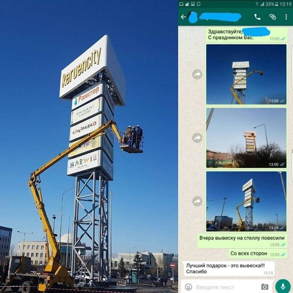 Полностью заменили световую вывеску с двух сторон. Клиенты довольны!