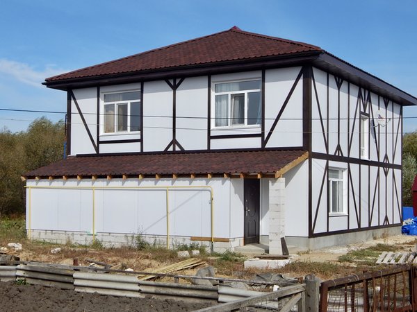 Чёрный квадрат Малевича? Нет! Ондулин в цвете «Сланец»! Цвет авангардный для кровли, но стоит к нему приглядеться! Фасад начинает играть новыми красками на контрасте цветов Хорошо смотрится с голубой, зелёной и красной облицовкой дома. Ондулин — это это битумный волнистый кровельный лист. Материал, обладающий высокой технологичностью. Он легко режется, при монтаже кровли используется почти безотходно. Необходимо только строго соблюдать все пункты инструкции. Если к раскрою и размещению материала подойти рационально, то расходы на кровлю… — Читать дальше