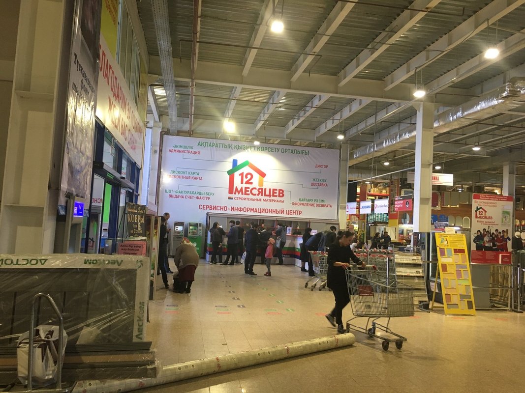 Адрес строительного магазина 12 Месяцев: Казахстан, Нур-Султан, Алаш шоссе, 20а.