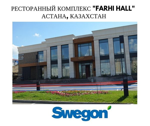 Наталья Леонова (14.01.2019): Дорогие друзья! Первый пост в наступившем 2019 году мы хотим начать с портфолио реализованного объекта #вастане Это ресторанный комплекс #farhihall Он расположен на левом берегу Астаны. Здесь и пивной ресторан О’16, несколько банкетных залов на 60 и 350 человек, неповторимая казахская национальная кухня и конечно же всегда свежий воздух от оборудования #swegon продолжение следует.... ——