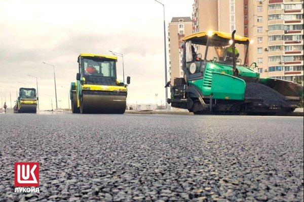 При укладке дорожного покрытия использовался разработанный специалистами ЛУКОЙЛа асфальтобетон с резиновым комплексным модификатором – специальной добавкой на основе отработанных шин.