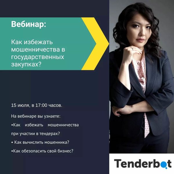 На вебинаре вы узнаете: 1️⃣ Как избежать мошенничества при участии в тендерах? 2️⃣ Как вычислить мошенника 3️⃣ Как обезопасить свой бизнес? Для более подробной информацией обращайтесь по телефонам: , Наш сайт : Мы в Instagram: tenderbotkz Наш Телеграм-канал:
