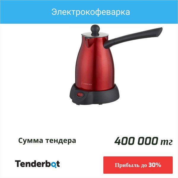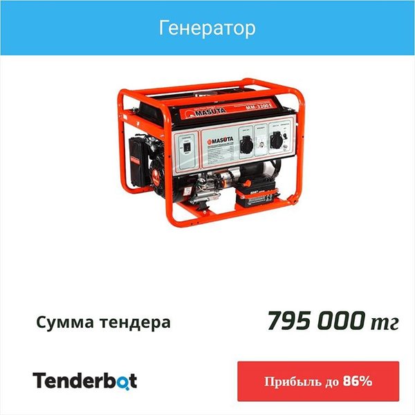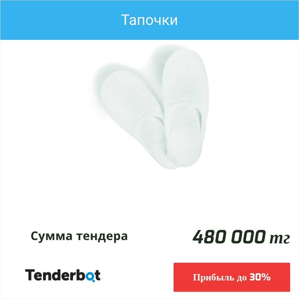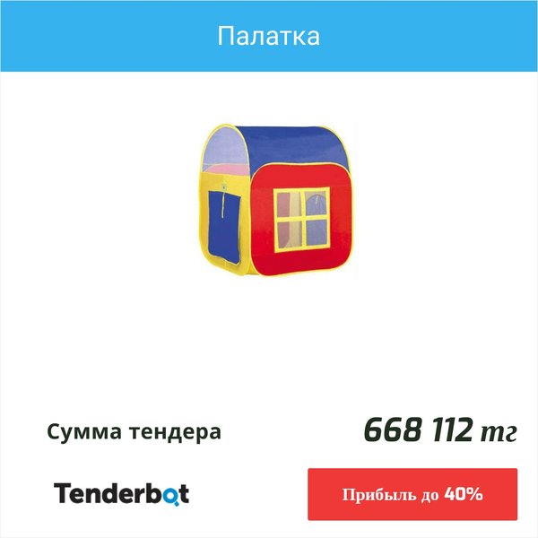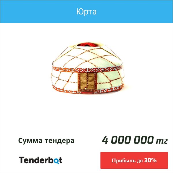Не теряйте ни одну возможность для заработка в эти непростые времена, на сайте Tenderbot.kz вы найдете место постоянного сбыта вашего товара, ведь там ежедневно публикуются тендеры на суммы свыше 15 миллиардов тенге.